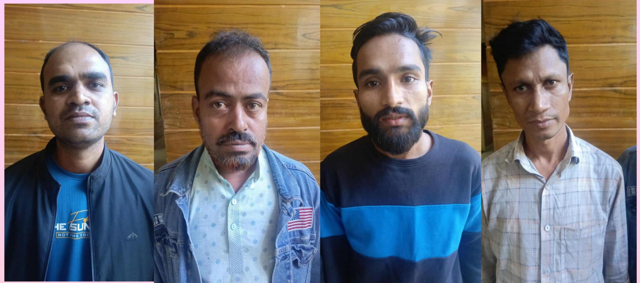 মো. মিজান (৩৮), পিতা মৃত আব্দুল আজিজ; দিদার হোসেন (২৫), পিতা ইমাম হোসেন; মো. সাদ্দাম (৩৪), পিতা আব্দুচ ছালাম; ও আনোয়ার মিয়া (৪৬), পিতা মৃত আব্দুস সালাম।