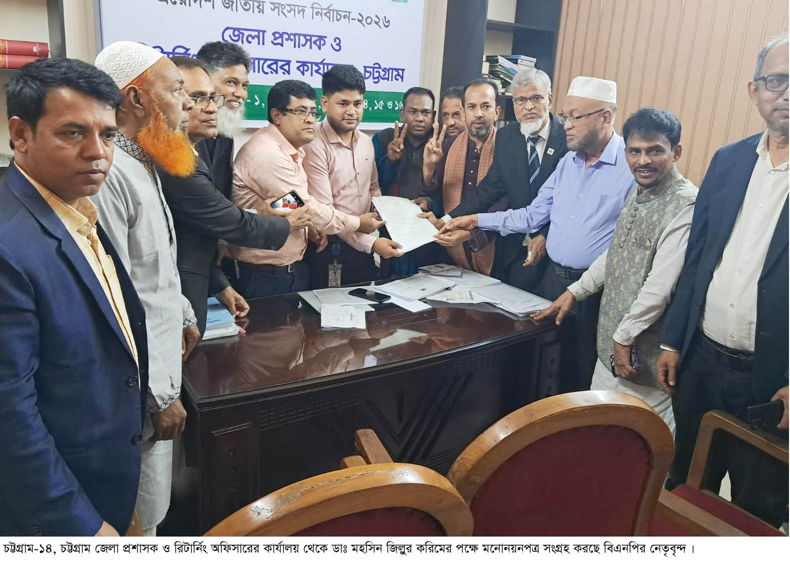 আসন্ন ত্রয়োদশ জাতীয় সংসদ নির্বাচনে চট্টগ্রাম-১৪ চন্দনাইশ-সাতকানিয়া (আংশিক) আসনে বাংলাদেশ জাতীয়তাবাদীদল (বিএনপি) কেন্দ্রীয় কার্য নির্বাহী কমিটির পরিবার কল্যাণ বিষয়ক সম্পাদক প্রফেসর ডাঃ মহসিন জিল্লুর করিমের পক্ষে ২৪ ডিসেম্বর (বুধবার) চট্টগ্রাম জেলা প্রশাসক ও রিটার্নিং অফিসারের কার্যালয় থেকে মনোনয়ন ফরম সংগ্রহ করেছেন চন্দনাইশ উপজেলা বিএনপি'র সাবেক আহ্বায়ক সালাউদ্দিন চৌধুরী।