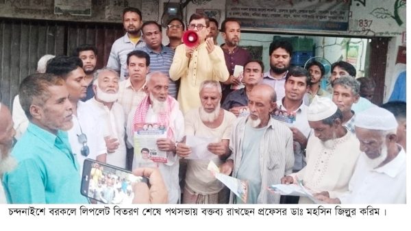 কেন্দ্রীয় বিএনপির পরিবার কল্যাণ বিষয়ক সম্পাদক ও চট্টগ্রাম-১৪ (চন্দনাইশ-সাতকানিয়া) আংশিক আসনের সাম্ভাব্য ধানের শীষের প্রার্থী প্রফেসর ডাঃ মহসিন জিল্লুর করিম বলেছেন, সর্বস্তরের মানুষের অধিকার রক্ষা হয়, এমন বাংলাদেশ বিএনপি গড়ে তুলবে। নতুন প্রজন্ম চায় দুর্নীতি বন্ধ হোক এবং ন্যায়ভিত্তিক রাষ্ট্র গড়ে উঠুক। জাতি চায় সত্যিকারের সংস্কার। সত্যিকারের সংস্কার হবে জনগণের মাধ্যমে। তাই আগামী নির্বাচনে জনগনকে ধানের শীষে ভোট দেওয়ার আহবান করেন।