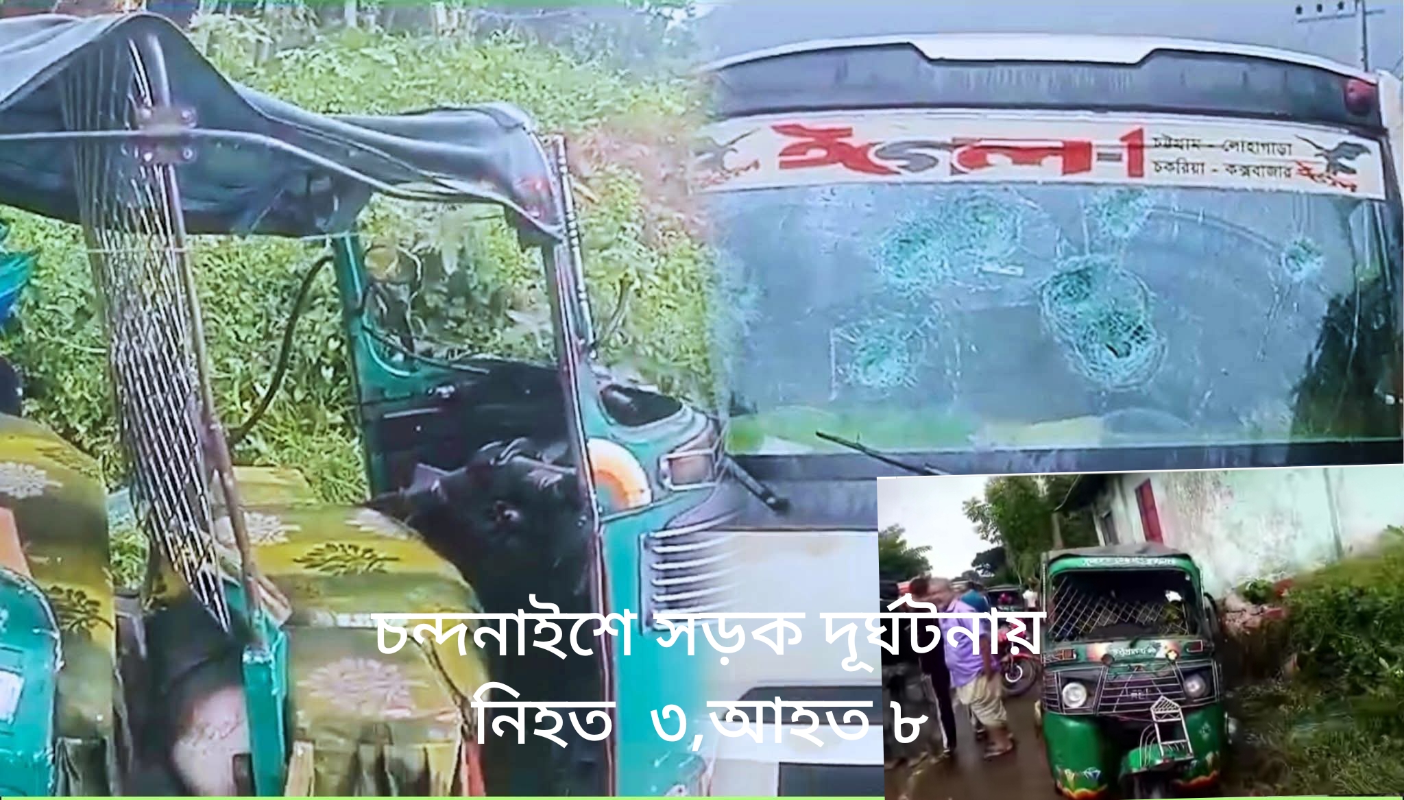 চন্দনাইশ উপজেলাধীন দোহাজারী পৌরসভা এলাকার সোনাইবাপের বটতল হযরত সুলতান শাহ জামে মসজিদ সংলগ্ন এলাকায় চট্টগ্রাম-কক্সবাজার মহাসড়কে চলমান যাত্রীবাহী ঈগল পরিবহনের বাস, নং- চট্টগ্রাম - জ- ১১-০১২০ এর সঙ্গে মুখোমুখি সংঘর্ষে সিএনজি চালিত দুটি অটোরিকশার ভয়াবহ সংঘর্ষ হয়। সংঘর্ষে বউ-শাশুড়িসহ তিনজন নিহত হয়েছেন। আজ সোমবার ১৫ সেপ্টেম্বর সকাল ১১টা ১০ মিনিটের দিকে মর্মান্তিক এই দূর্ঘটনাটি ঘটে। একই ঘটনায় গুরুতর আহত হয়েছেন আরো অন্তত ৮ জন।