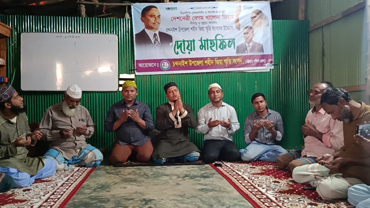 চট্টগ্রামের চন্দনাইশে বিএনপির চেয়ারপার্সন, সাবেক তিন বারের প্রধানমন্ত্রী, আপোষহীন দেশনেত্রী বেগম খালেদা জিয়ার রোগমুক্তি ও সুস্থতা কামনায় গত ৩০ নভেম্বর বাদে আসর দোহাজারী জঙ্গলী পীর শাহ্ (রহঃ) হেফজখানা ও এতিখানার শিক্ষার্থীদের নিয়ে দোয়া মাহফিল চন্দনাইশ উপজেলা শহীদ জিয়া স্মৃতি সংসদের যুগ্ম আহবায়ক রমজান হোসেন মানিকের সভাপতিত্বে অনুষ্ঠিত হয়। এতে প্রধান অতিথি হিসাবে ছিলেন, চন্দনাইশ উপজেলা শহীদ জিয়া স্মৃতি সংসদের আহবায়ক মোহাম্মদ লোকমান হাকিম। প্রধান বক্তা ছিলেন, চন্দনাইশ উপজেলা শহীদ জিয়া স্মৃতি সংসদের সদস্য সচিব মোহাম্মদ মানিকসহ স্থানীয় বিএনপিসহ অঙ্গ সংগঠনের নেতৃবৃন্দ উপস্থিত ছিলেন।
