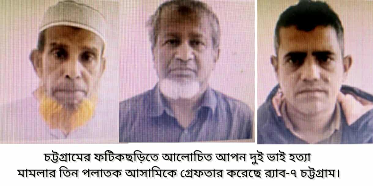 চট্টগ্রামের ফটিকছড়ি উপজেলায় আলোচিত দুবাই প্রবাসী আলমগীর (৪৫)ও জাহাঙ্গীর(৩৫) দুই ভাইকে কুপিয়ে হত্যার ঘটনায় দায়েরকৃত মামলার পলাতক ৩ আসামিকে গ্রেপ্তার করেছে র্যাব-৭ চট্টগ্রামের একটি অভিযানিক দল।