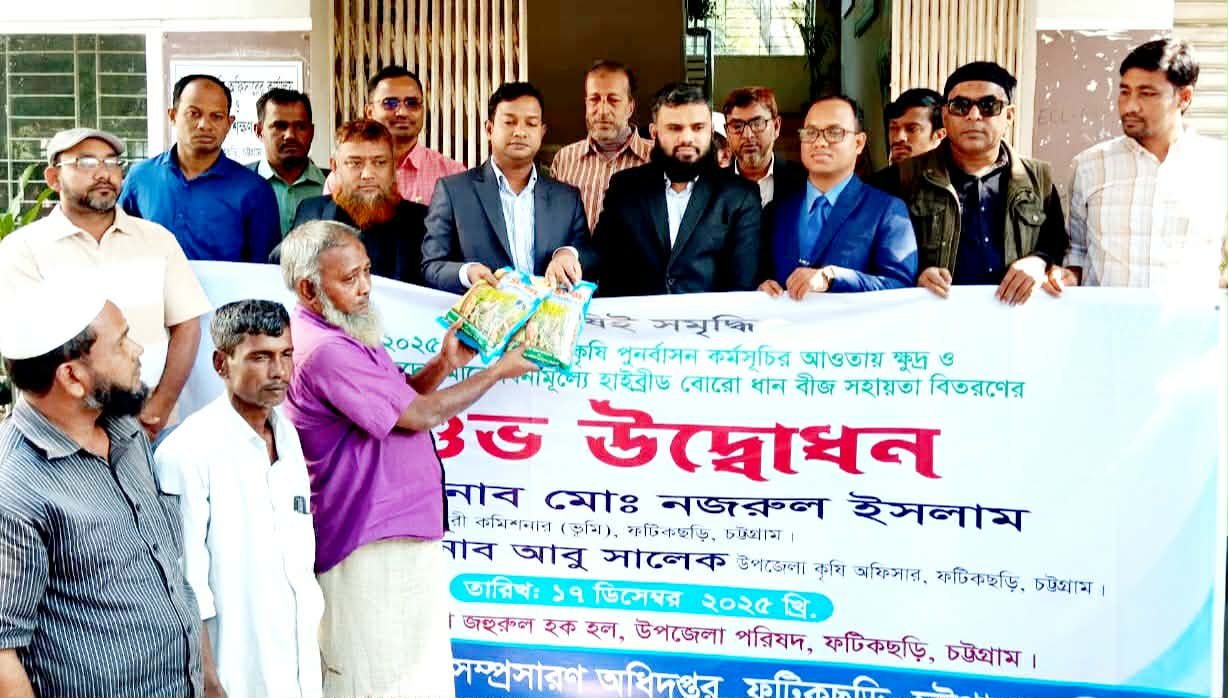 চট্টগ্রামের ফটিকছড়ি উপজেলায় বোরো মৌসুমকে সামনে রেখে সাড়ে ৩ হাজার কৃষকের মাঝে বিনামূল্যে ২ কেজি এস এল ৮ এইচ হাইব্রিড বোরো ধানের বীজ বিতরণ করা হয়েছে।