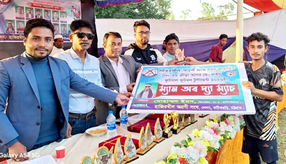 বিপুল উৎসাহ-উদ্দীপনা এবং জাঁকজমকপূর্ণ আয়োজনের মধ্য দিয়ে উদ্বোধন হল ফটিকছড়ি উপজেলার লেলাং ইউনিয়নের শাহনগর ‘হাজিরখীল অগ্রণী সংঘ ফুটসাল ফুটবল টুর্নামেন্ট-২০২৬-এর।