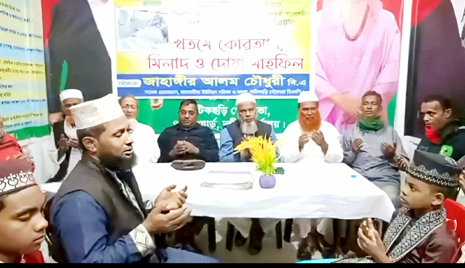 বিএনপি চেয়ারপার্সন,সাবেক তিন বারের প্রধানমন্ত্রী,আপোষহীন দেশনেত্রী বেগম খালেদা জিয়ার রোগমুক্তি কামনায় ফটিকছড়ি পৌরসভার ৪ নং ওয়ার্ডের চৌমুহনি বাজারস্থ কার্যালয়ে বিএনপি নেতা রাংগামাটিয়া ইউনিয়ন পরিষদের সাবেক চেয়ারম্যান ও পৌর বিএনপি'র সদস্য জাহাঙ্গীর আলম চৌধুরীর আয়োজনে খতমে কোরআন,মিলাদ ও দোয়া মাহফিল বাদ এশার অনুষ্টিত হয়।