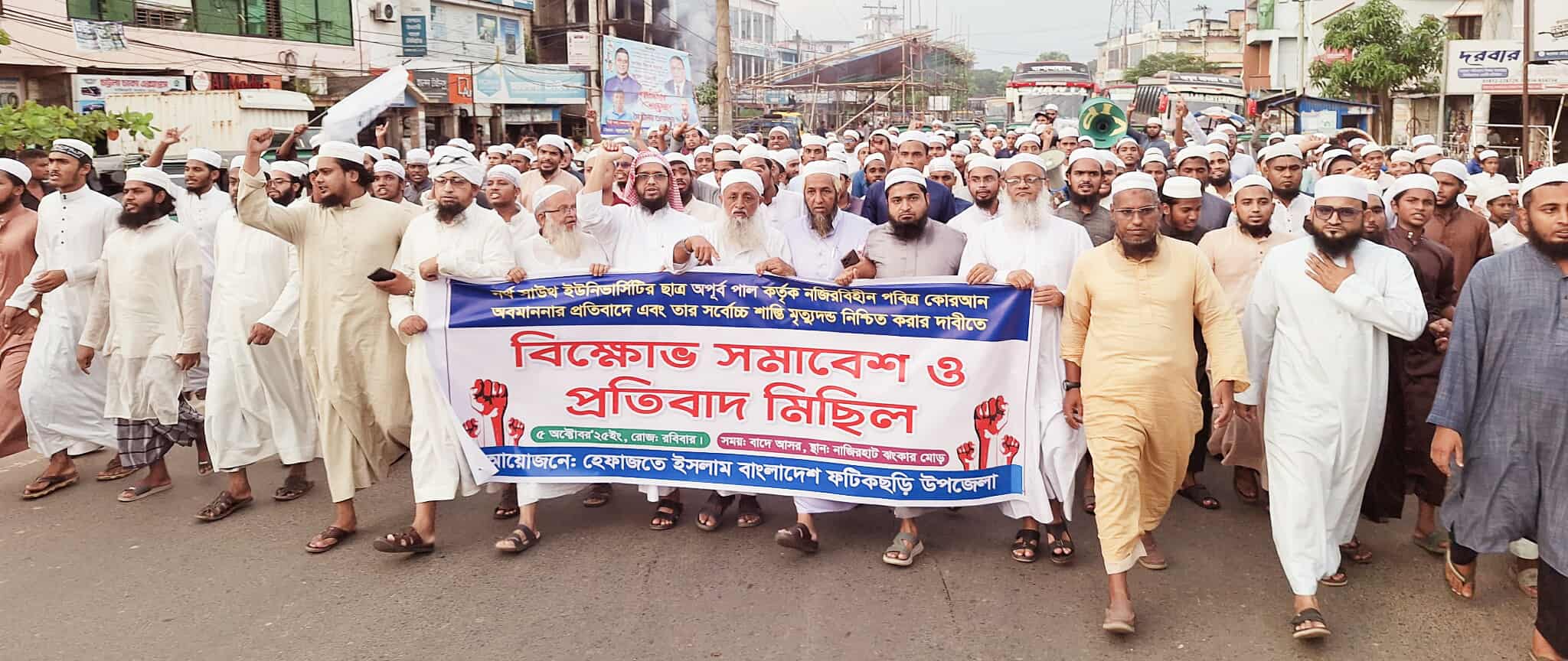 দৃষ্টান্তমূলক শাস্তির দাবীতে বিক্ষোভ করেছে হেফাজতে ইসলাম বাংলাদেশ ফটিকছড়ি উপজেলা শাখা।