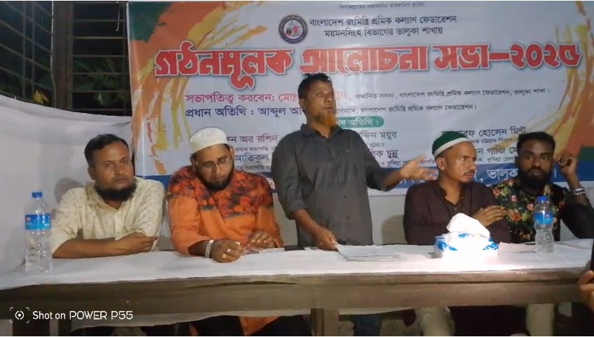 বাংলাদেশ রং মিস্ত্রি শ্রমিক কল্যাণ ফেডারেশন ময়মনসিংহ জেলার ভালুকা উপজেলা শাখার উদ্যোগে গত ৫ নভেম্বর বুধবার সন্ধ্যায় ভালুকা পৌরসভার একটি হলরুমে মোঃ শাহাজাহানের সভাপতিত্বে গঠনমূলক আলোচনাসভা অনুষ্ঠিত হয়। উক্ত আলোচনা সভায় প্রধান অতিথি হিসেবে উপস্থিত ছিলেন, বাংলাদেশ রং মিস্ত্রি শ্রমিক কল্যাণ ফেডারেশনের সম্মানিত চেয়াম্যান আবদুল আলিম।