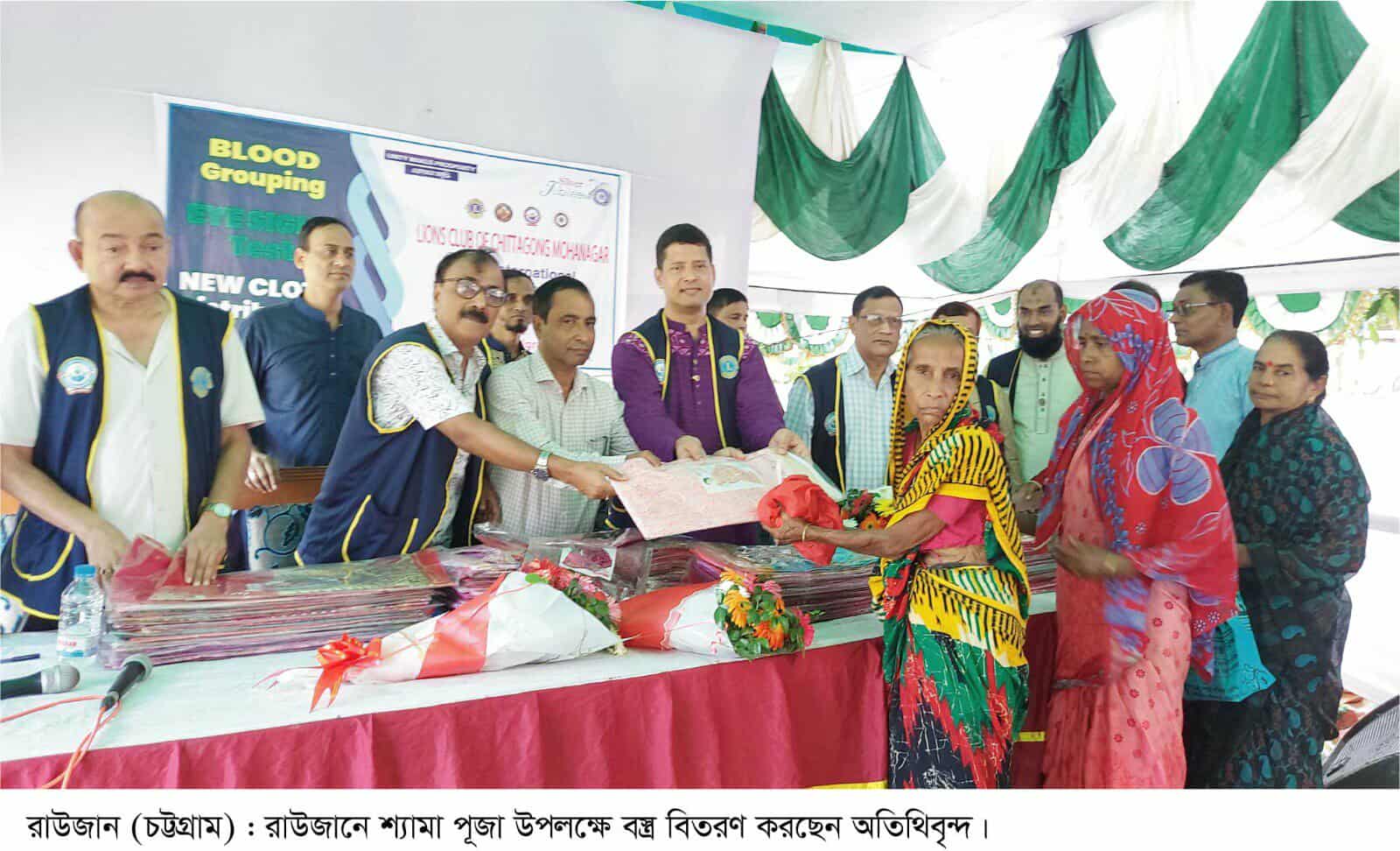 চট্টগ্রামের রাউজানের সুলতানপুরে শ্রীশ্রী শ্যামা মায়ের ২৯০ তম পূজা উপলক্ষে প্রাচীনতম তীর্থস্থান শ্রীশ্রী কালী বিগ্রহ মন্দিরে নানা কর্মসূচীর মধ্যদিয়ে ৪দিন ব্যাপী অনুষ্ঠান গত সোমবার (২০ অক্টোবর) রাতে সু সম্পন্ন হয়েছে। এতে প্রথম দিন শুক্রবার সকালে লায়ন্স ইন্টারন্যাশনাল ৩১৫-বি৪ বাংলাদেশ এর আওতাধীন লায়ন্স ক্লাব অব চিটাগাং মহানগরের উদ্যোগে ও চট্টগ্রাম লায়ন্স ফাউন্ডেশনের সহযোগিতায় , বিনামূল্যে চক্ষু চিকিৎসা চোখের ছানি অপারেশন, রক্তের গ্রুপ নির্ণয়, বস্ত্র বিতরণ অনুষ্ঠিত হয়। এই উপলক্ষে আয়োজিত সভায় লায়ন প্রকৌশলী বিপ্লব দাশের সভাপতিত্বে ও মন্দির পরিচালনা কমিটির অর্থ সম্পাদক লায়ন শিমুল নন্দীর সঞ্চালনায় বক্তব্য রাখেন সাবেক ইউপি চেয়ারম্যান মেজবাহ উদ্দিন আকবর, লায়ন প্রকৌশলী বিপ্লব দাশ, লায়ন পার্থ ভট্টাচার্য্য, লায়ন ডা.দেবাশীষ দত্ত, লায়ন অশেষ কুমার উকিল, লায়ন অঞ্জন শেখর দাশ সিআইপি, ওয়াহিদ ইসলাম সিকদার, পরেশ কুমার চৌধুরী, লায়ন ইফতেকারুল আলম, লায়ন নুরুল কবির বাবুল, লায়ন সমীর দাশ, লায়ন যতিন্দ্র কুমার সাহা, লায়ন সাইফুল ইসলাম, সহিদুল ইসলাম, সাংবাদিক প্রদীপ শীল প্রমুখ। সন্ধ্যায় সাংস্কৃতিক অনুষ্ঠান ও ধর্মীয় আলোচনা সভায় মন্দির পরিচালনা কমিটির সভাপতি সাংবাদিক নিরুপম দাশগুপ্তের সভাপতিত্বে ও সাধারণ সম্পাদক রাজীব দাশের সঞ্চালনায় প্রধান অতিথি ছিলেন রাউজান পৌরসভা বিএনপির সাবেক সাধারণ সম্পাদক সৈয়দ মঞ্জুরুল হক। বক্তব্য রাখেন পৌরসভা যুবদলের সদস্য সচিব শাহজাহান সাহিল, বিএনপি নেতা শহীদ চৌধুরী, উপজেলা পূজা উদযাপন পরিষদের সভাপতি অরুন পালিত বাসু, সাধারণ সম্পাদক সুমন দাশগুপ্ত, জন্মাষ্টমী উদযাপন পরিষদের সভাপতি দীপক তালুকদার, পৌরসভা পূজা উদযাপন পরিষদের সাধারণ সম্পাদক দীপ্ত চৌধুরী, সনাতন বিদ্যার্থী সংসদ রাউজান শাখার সভাপতি শ্রীমান দাশগুপ্ত। সাংস্কৃতিক অনুষ্ঠান পরিচালনায় ছিলেন শিক্ষক প্রদীপ দাশ ও শিক্ষক সঞ্জয় দাশ।