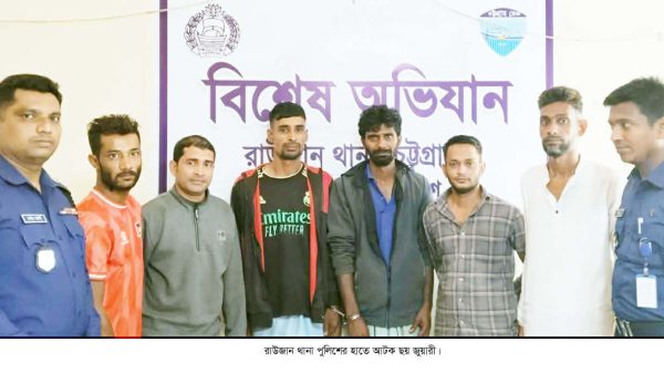 রাউজান থানার অফিসার ইনচার্জ সাজেদুল ইসলাম বলেন জুয়া খেলার আসর হতে নগদ টাকা ও জুয়া খেলার সামগ্রীসহ ৪ জন এবং ওয়ারেন্টভুক্ত আরও ২ জনসহ মোট ৬ জন আসামী গ্রেফতার করা হয়েছে ।