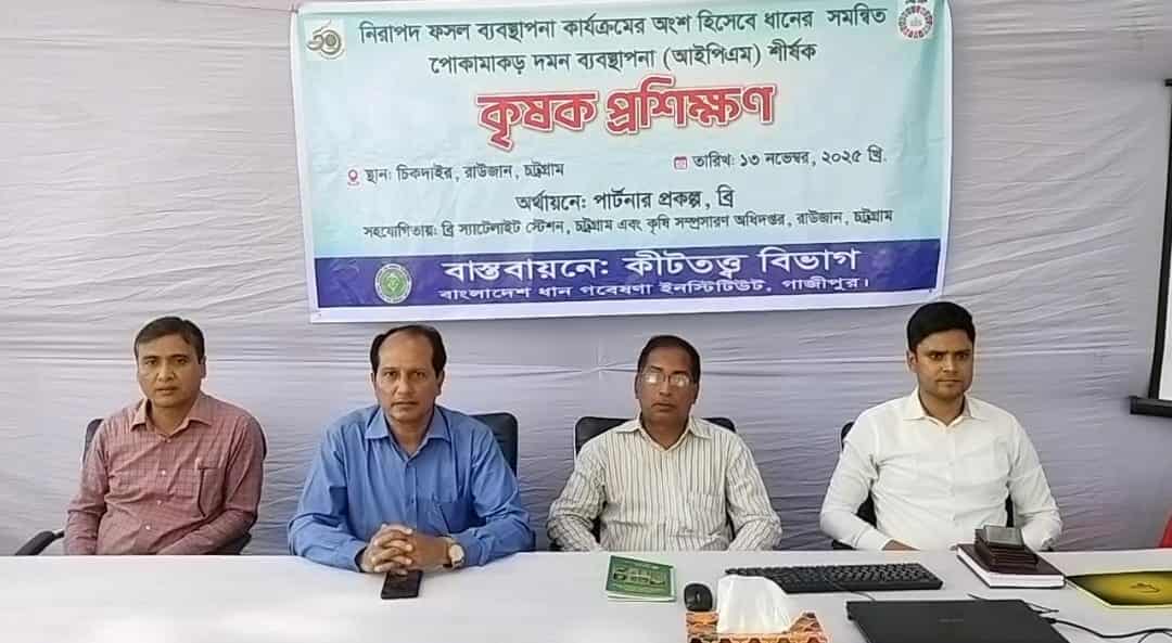 চট্টগ্রামের রাউজানে নিরাপদ ফসল ব্যবস্থাপনা কার্যক্রমের অংশ হিসেবে ধানের সমন্বিত পোকামাকড় দমন ব্যবস্থাপনা (আইপিএম) শীর্ষক কৃষক প্রশিক্ষণ ও মাঠ দিবস অনুষ্ঠিত হয়েছে।
