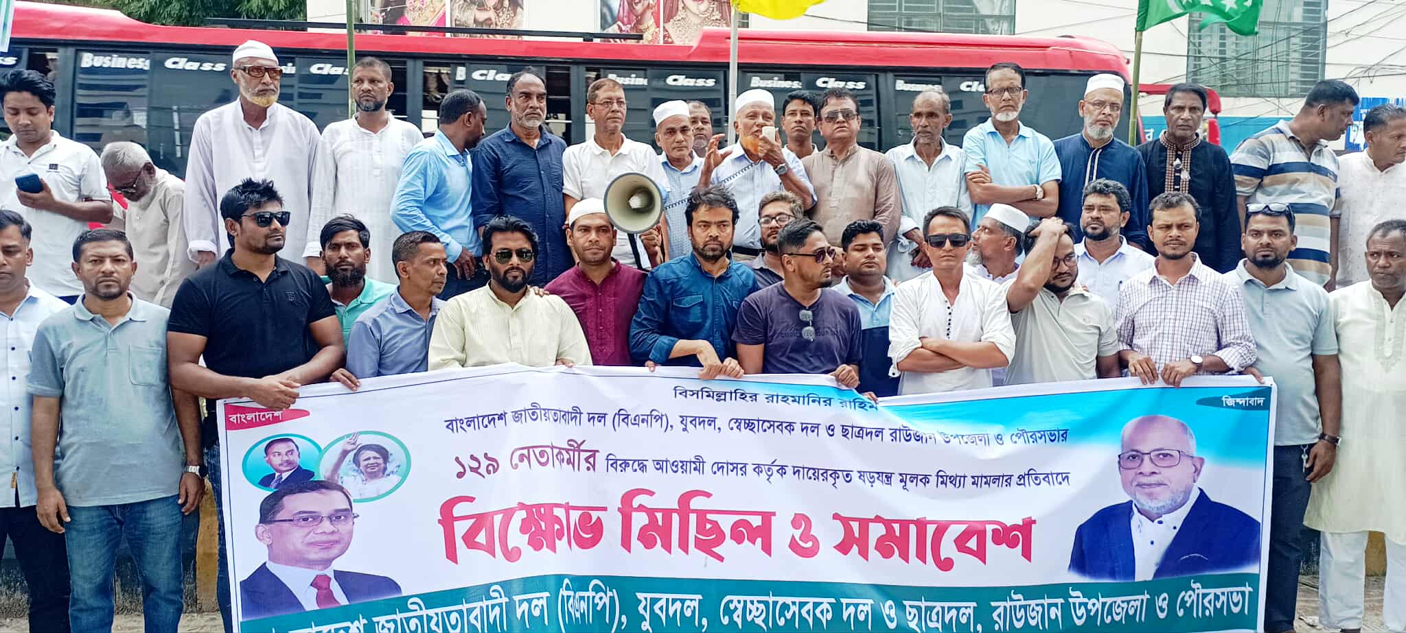 বাংলাদেশ জাতীয়তাবাদী দল (বিএনপি), যুবদল, ছাত্রদল ও সেচ্ছাসেবক দল রাউজান উপজেলা ও পৌরসভার ১২৯ নেতাকর্মীর বিরুদ্ধে আওয়ামী দোসর দলের চেয়ারপার্সনের উপদেষ্টা গোলাম আকবর খোন্দকার সমর্থিত এক নেতা কর্তৃক দায়েরকৃত মিথ্যা মামলা প্রত্যাহারের দাবিতে বিক্ষোভ মিছিল ও সমাবেশ করেছে দলের ভাইস চেয়ারম্যানের পদ স্থগিত হওয়া গিয়াস উদ্দিন কাদের চৌধুরী সমর্থিত নেতাকর্মীরা। রোববার (২৪আগস্ট) সকাল ১১টায় উপজেলা ও পৌরসভা বিএনপি এবং অঙ্গসংগঠনের ব্যানারে উপজেলা সদরের মুন্সিরঘাটাস্থ দলীয় কার্যালয়ের সামনে থেকে মিছিলটি বের হয়ে ফকিরহাট হয়ে উপজেলা পরিষদ চত্ত্বর ঘুরে মুন্সিরঘাটা এসে সমাবেশের মধ্যদিয়ে শেষ হয়।