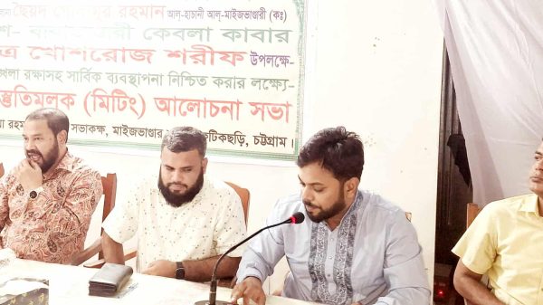 সভাশেষে সকল উম্মাহর কল্যাণ কামনা করে মোনাজাত পরিচালনা করেন মাওলানা দিদারুল আলম মাইজভান্ডারী।