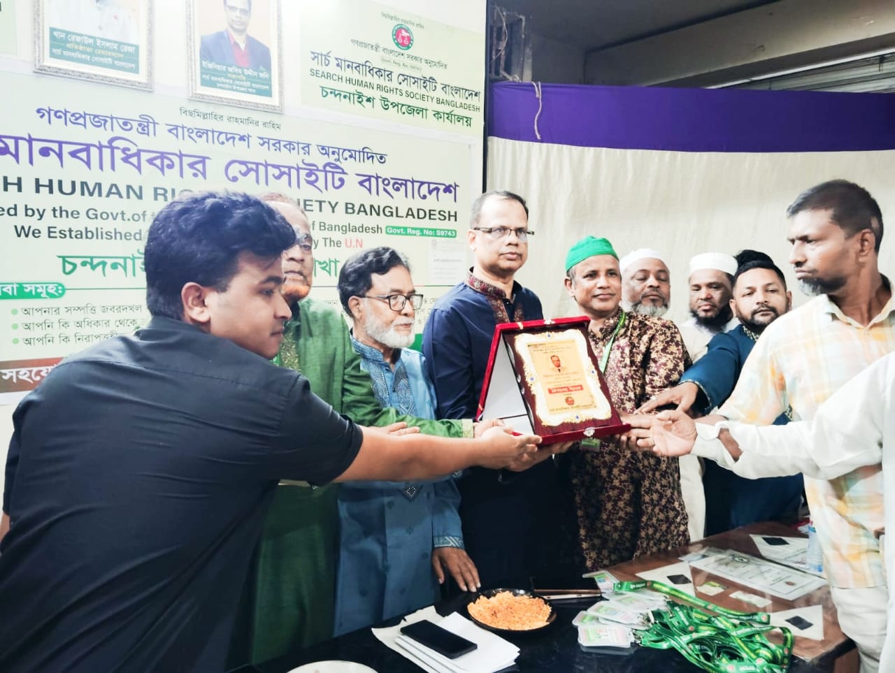 চন্দনাইশে সার্চ মানবাধিকার সোসাইটি বাংলাদেশ উপজেলা শাখার সদস্যদের নতুন কার্ড বিতরন ও কেন্দ্রীয় কমিটির নির্দেশে সমাজের উন্নয়ন মূলক কাজে বিশেষ অবদান রাখায় সম্মাননা স্মারক প্রদান অনুষ্ঠান শুক্রবার (৭ নভেম্বর) বিকালে চন্দনাইশ উপজেলা শাখার দোহাজারীস্থ কার্যালয়ে সার্চ মানবাধিকার সোসাইটি বাংলাদেশ চন্দনাইশ উপজেলা শাখার যুগ্ম সাধারণ সম্পাদক এম হেলাল উদ্দিন নিরব এর সঞ্চালনায় এবং সি: সহ-সভাপতি আন্নার আলী সভাপতিত্বে অনুষ্ঠিত হয়েছে। এতে প্রধান অতিথি হিসেবে উপস্থিত ছিলেন, নাহার বিল্ডার্সের চেয়ারম্যান, সার্চ মানবাধিকার সোসাইটি চন্দনাইশ শাখার সভাপতি বিশিষ্ট শিল্পপতি ও সমাজ সেবক ইঞ্জিনিয়ার মোহাম্মদ জসিম উদ্দিন।