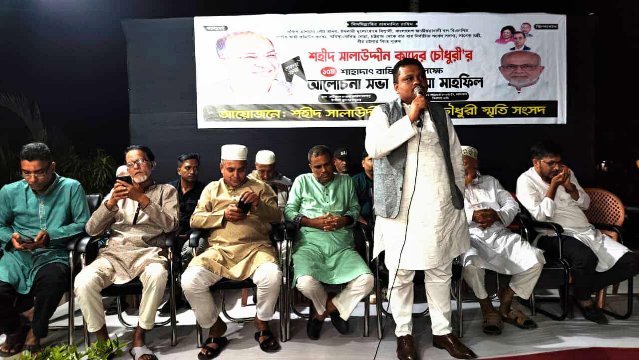 সাবেক এমপি ও মন্ত্রী সালাউদ্দিন কাদের চৌধুরীর ১০ম মৃত্যুবার্ষিকী উপলক্ষে গতকাল শনিবার সন্ধ্যায় রাউজান পৌরসভার ৬নম্বর ওয়ার্ডের রাউজান ইংলিশ স্কুল প্রাঙ্গনে শহীদ সালাউদ্দিন কাদের চৌধুরী স্মৃতি সংসদ আয়োজিত আলোচনা সভা ও দোয়া মাহফিলে বক্তারা এসব কথা বলেন। আলোচনা সভা ও দোয়া মাহফিলে সভাপতিত্ব করেন চট্টগ্রাম উত্তর জেলা স্বেচ্ছাসেবক দলের সাবেক সহ-ক্রীড়া বিষয়ক সম্পাদক মোহাম্মদ আলী সুমন। প্রধান অতিথি ছিলেন চট্টগ্রাম উত্তর জেলা শিক্ষক সমিতির সাবেক সভাপতি প্রবীণ বিএনপি নেতা আবু জাফর চৌধুরী। প্রধান বক্তা ছিলেন রাউজান পৌরসভা বিএনপির সাবেক সাধারণ সম্পাদক সৈয়দ মঞ্জুরুল হক। প্রধান আলোচক ছিলেন চট্টগ্রাম উত্তর জেলা যুবদলের সহ-সভাপতি সাবের সুলতান কাজল। ওয়ার্ড বিএনপির সাধারণ সম্পাদক শহিদ চৌধুরী ও রাউজান কলেজ ছাত্রদলের সাবেক সিনিয়র সহ-সভাপতি হাসান বাহাদুরের সঞ্চালনায় অতিথি ছিলেন ওমর ফারুক, আলী আজগর চৌধুরী, আবু বক্কর সিদ্দিকী, তসলিম উদ্দিন চৌধুরী, সাইদ বিন আমান রানা, শাহাদাত মির্জা,রাউজান পৌরসভা যুবদলের সদস্য সচিব এম শাহজান সাহিল, আশিকুর রহমান ফয়েজ, তসলিম উদ্দিন, আরিফুল ইসলাম রুবেল, ছোটন আজম, সাইফুদ্দিন রুবেল, আরিফুল মোঃ মিটু, মোঃ আব্দুল শিকদার, ইসলাম, যুবদল নেতা মোহাম্মদ হোসেন, মোহাম্মদ আজগর, শাহ নেওয়াজ, বাপ্পা কুমার দাশ। এসময় উপস্থিত ছিলেন জীবন খন্দকার, রিয়াজ, রিয়াজ চৌধুরী, নাছির উদ্দিন, প্রবাসী মোহাম্মদ হোসেন, মোহাম্মদ ফোরকান, মোহাম্মদ রিপন, আরিফ, সহ আরও অনেকে।
