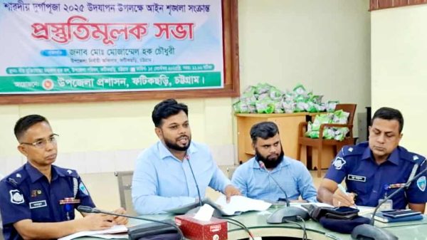 রফিকুল আলম,ফটিকছড়ি : ফটিকছড়ি থানা ও ভূজপুর থানা এলাকায় আসন্ন শারদীয় দূর্গাপূজা ১শত ২৭টি পূজা মণ্ডপে অনুষ্ঠিত হবে। আসন্ন দূর্গাপূজা সুন্দর ভাবে উৎসব মূখর পরিবেশে সম্পন্ন করতে সোমবার ১৫