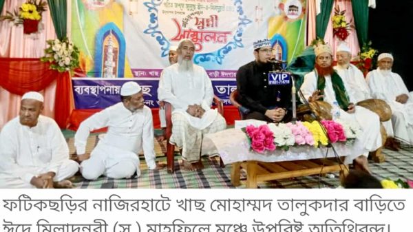 রফিকুল আলম,ফটিকছড়ি । ফটিকছড়ি উপজেলার নাজিরহাট পৌরসভার ৮নং ওয়ার্ডের খাছ মোহাম্মদ তালুকদার বাড়ির উদ্যোগে প্রতি বছরের ন্যায় এবছরও ঈদে মিলাদুন্নবী (স.) উদযাপন উপলক্ষে সুন্নী সম্মেলন গত শনিবার বাড়ির ঈদগাহ